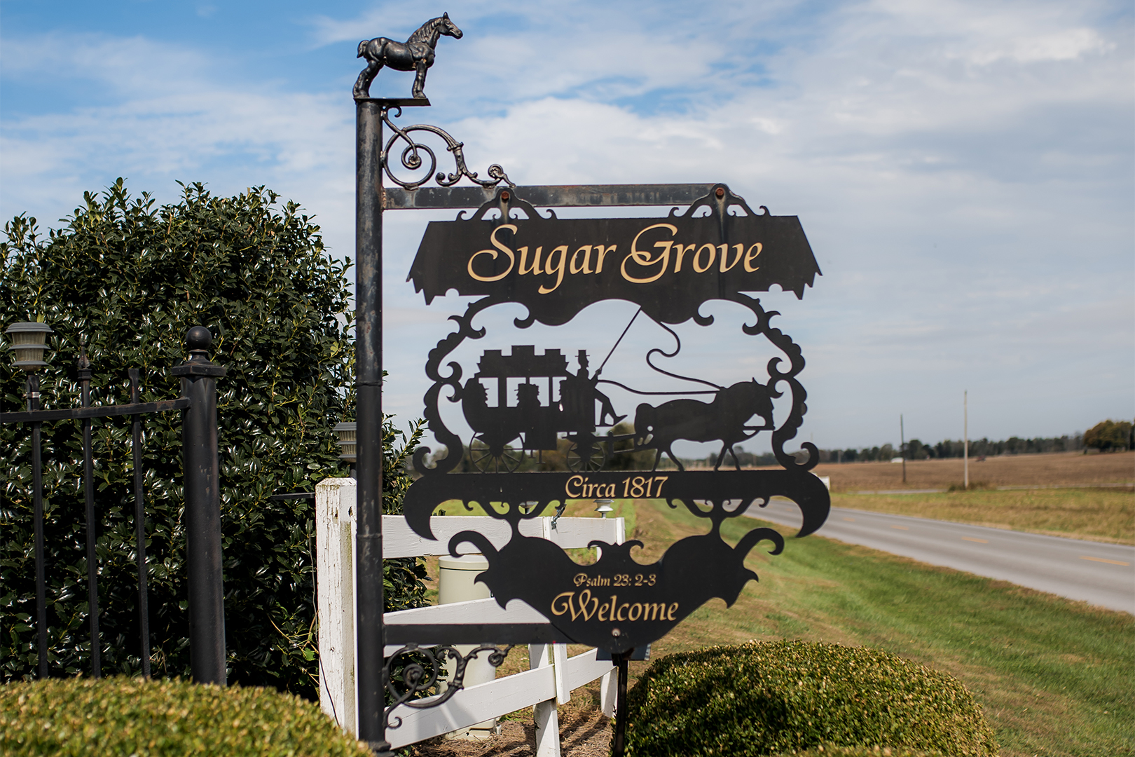 Sugar Grove was originally purchased by Claiborne Dandridge West, from Buckingham County, Virginia. By the year 1814 he had accumulated more than 30,000 acres of choice Christian County, Kentucky land for himself, relatives, and friends. This property today would cover a large part of South Christian County, Kentucky, and a part of present Trigg County, Kentucky. At the time of his death in 1822 he still owned almost four thousand acres.
